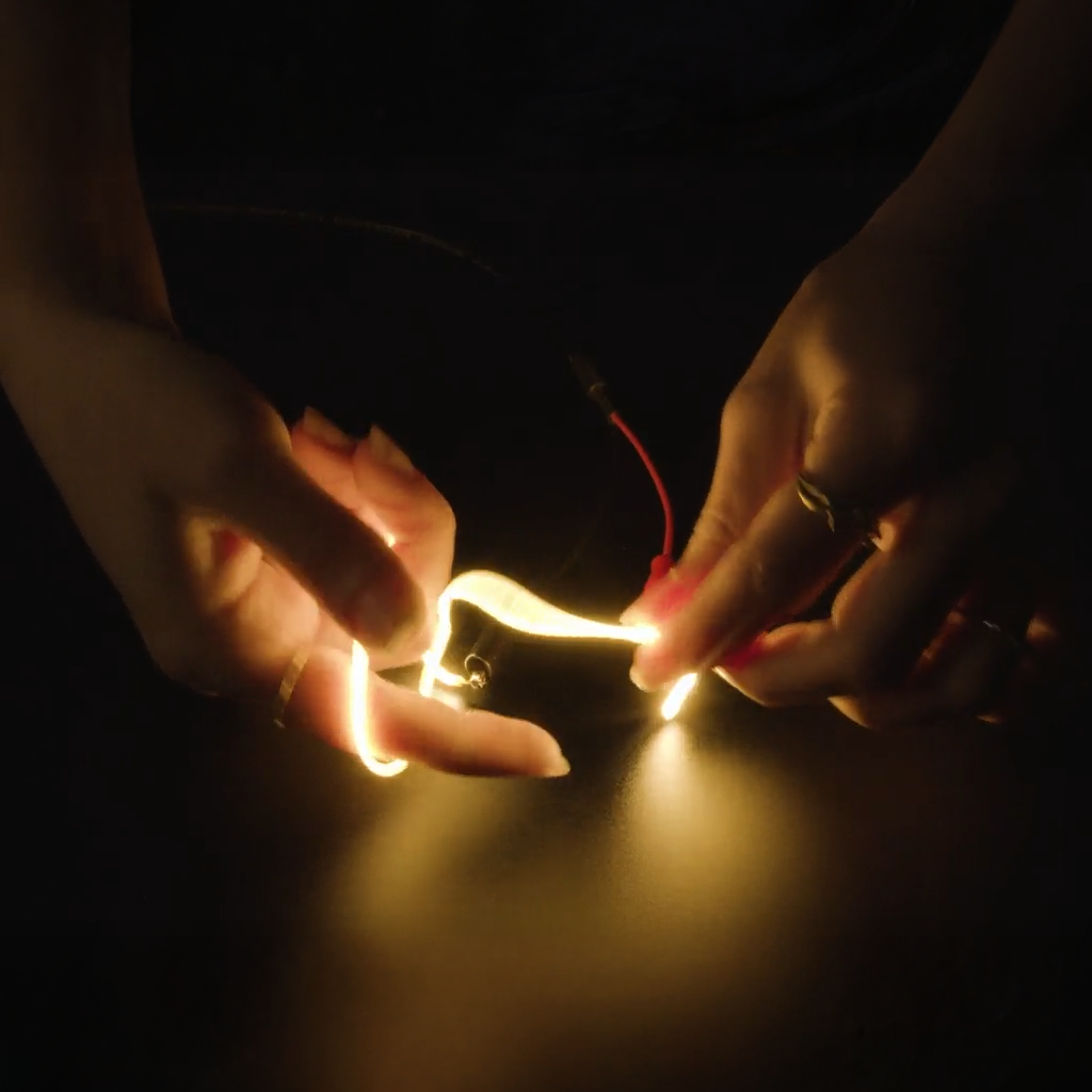 Each nOOd consists of dozens of tiny LEDs bonded to a flexible metal strip and coated in soft silicone for durability and a smooth glow.