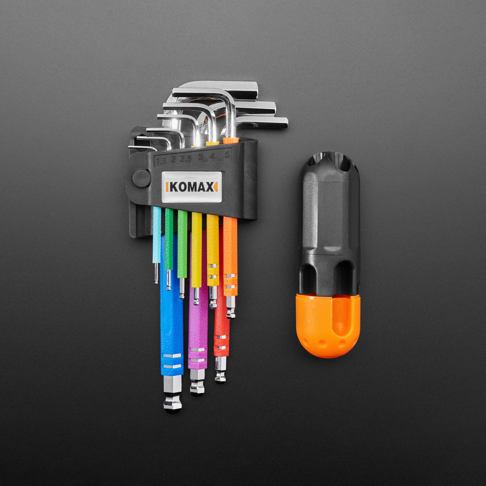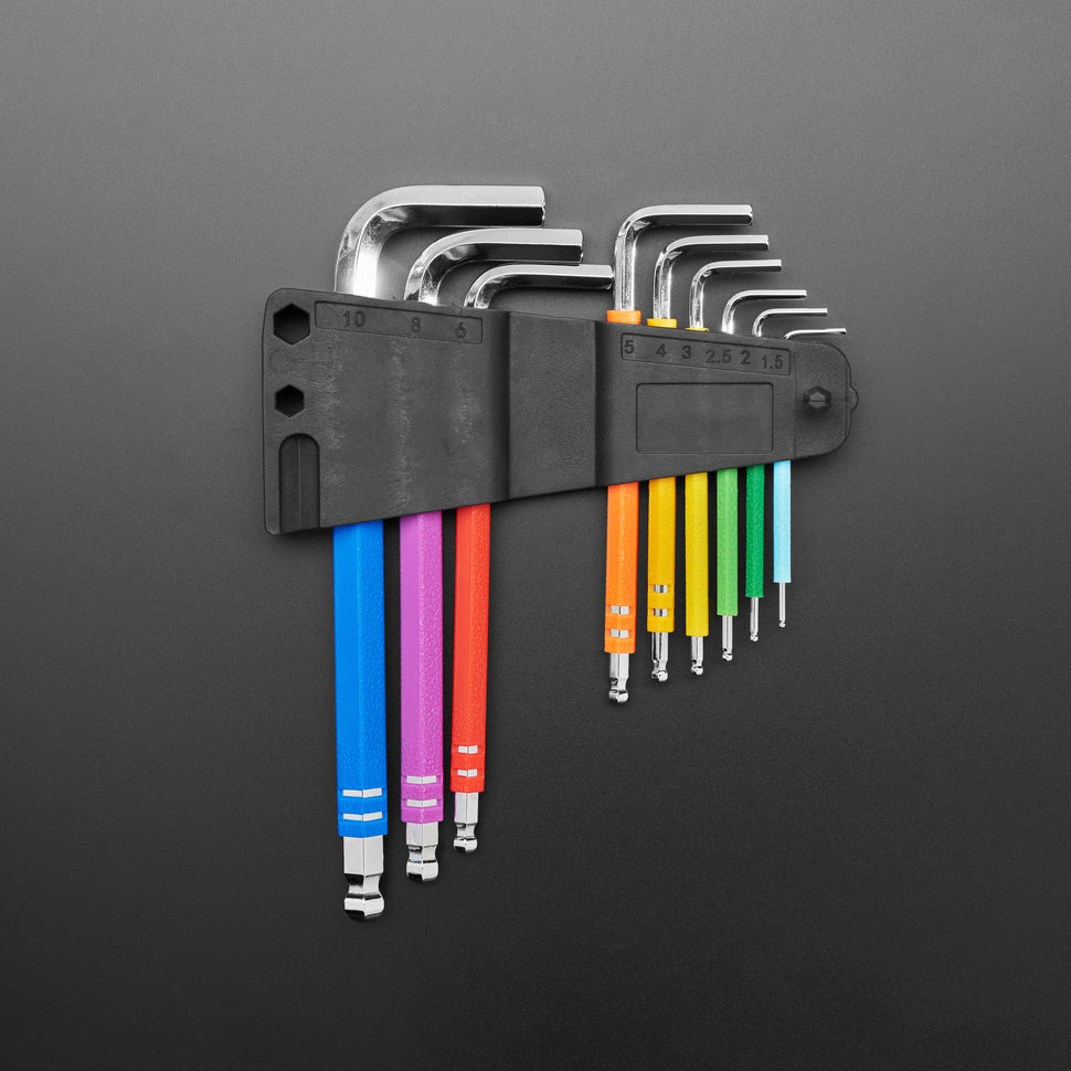 Add some color to your toolbox with this 9-Piece Rainbow Metric Allen Wrench / Hex Key Set. Perfect for projects with hexagonal screws, these keys also known as Allen wrenches, combine durability with style, making everyday repairs a little more fun.