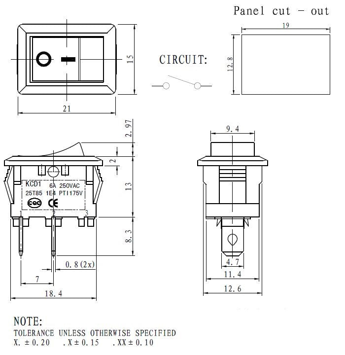 KCD1-101 Rocker Panel Size 6A/250V 2pin