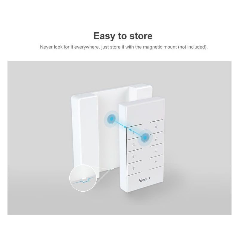 The SONOFF RM433 Base is a dedicated wall mount holder designed for the SONOFF RM433 and RM433R2 remote controllers. It offers a secure and stylish way to store your remote while keeping it easily accessible.